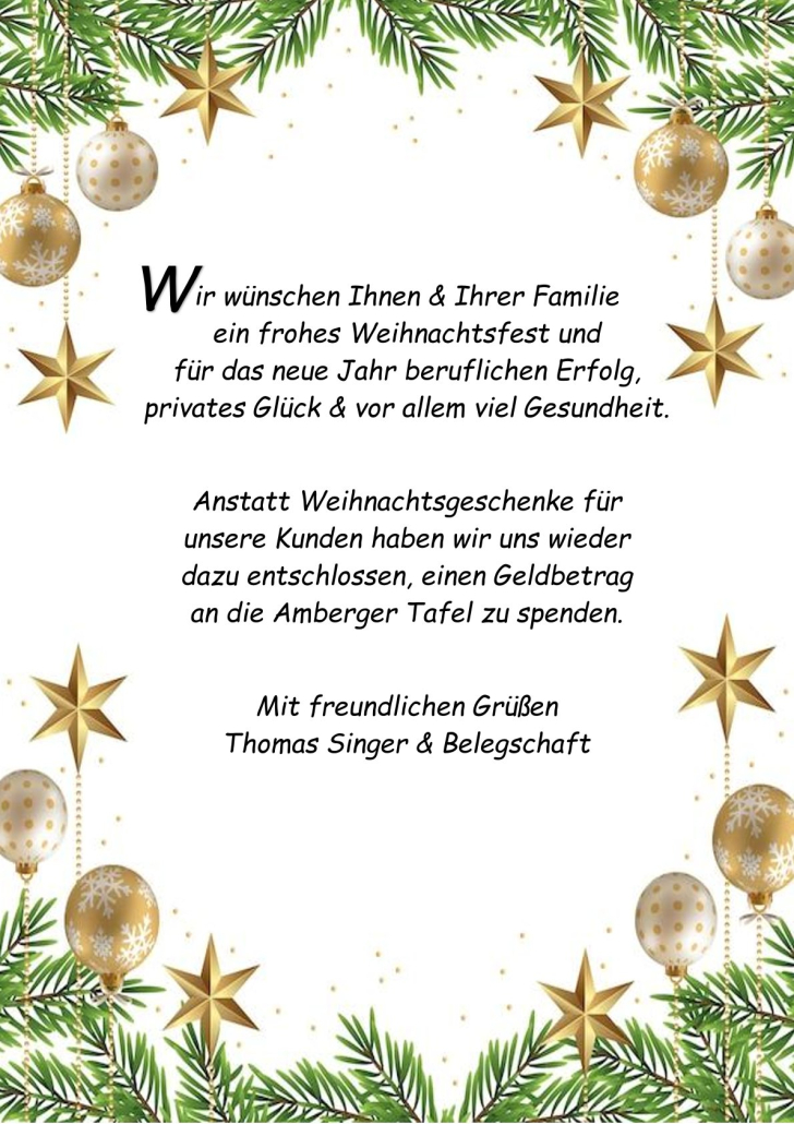 Auf diesem Wege wünschen wir allen unseren Kunden, Interessenten und Geschäftspartnern eine schöne Weihnachtszeit und einen guten Rutsch ins neue Jahr!